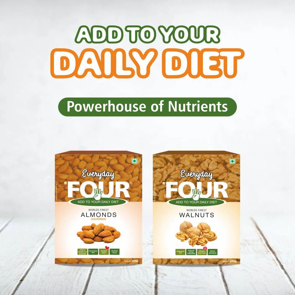 1 This Combo pack includes Everyday Four California Almonds -200g, Walnuts Kernels-200g.