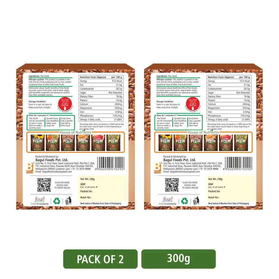 Bagul Foods Everyday Four Raw Flax ( Alsi ) Seeds |Combo Pack | 150g Each