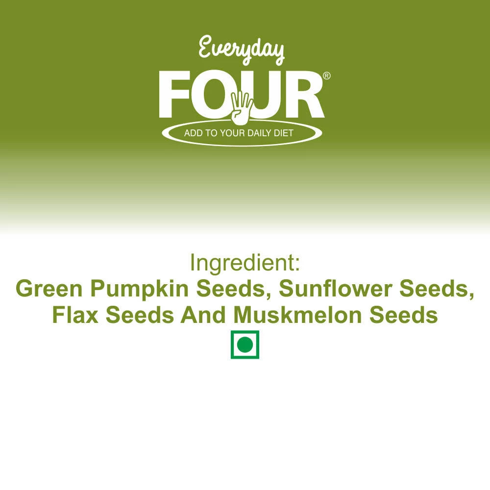 2 Everyday Four Raw Mix seeds will fill you with necessary dietary nutrients that curbs the tendency to snack unhealthily stuff.