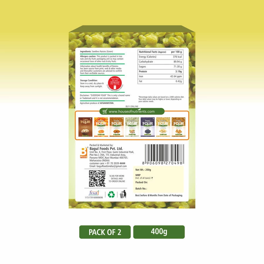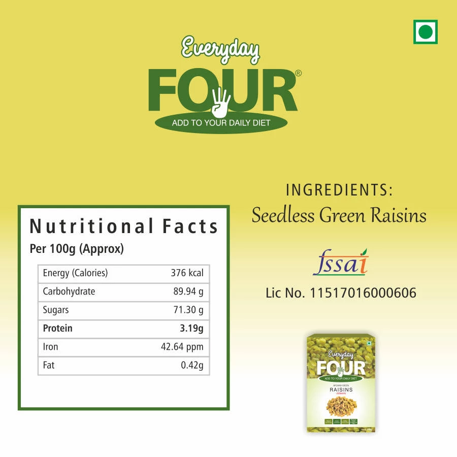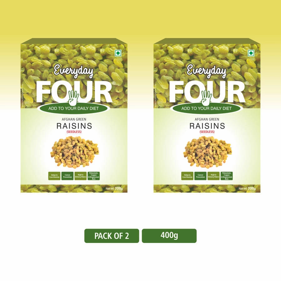 1 Everyday Four Afghan Green Raisins are Superior quality Seedless Raisins from Afghanistan.Â