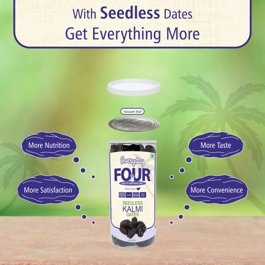 Now with Everyday Four Seedless Kalmi (Safawi) Dates, get everything more-
