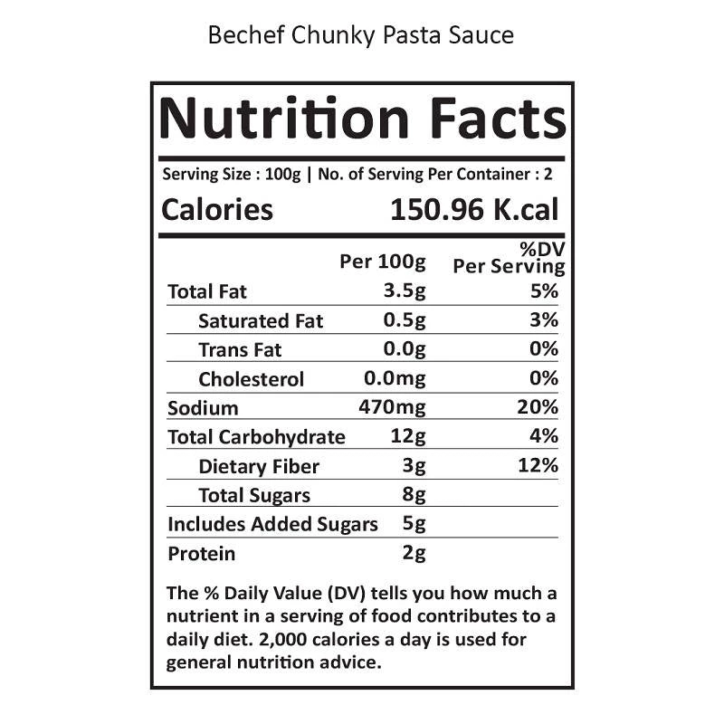 Bechef Chunky Tomato Sauce combines chunky tomatoes with a garlic and onion pairing that belongs in any traditional Italian meal. Packed with delicious vegetables Contains one and a half servings of veggies in every ½ cup of sauce Available in 400g Jar