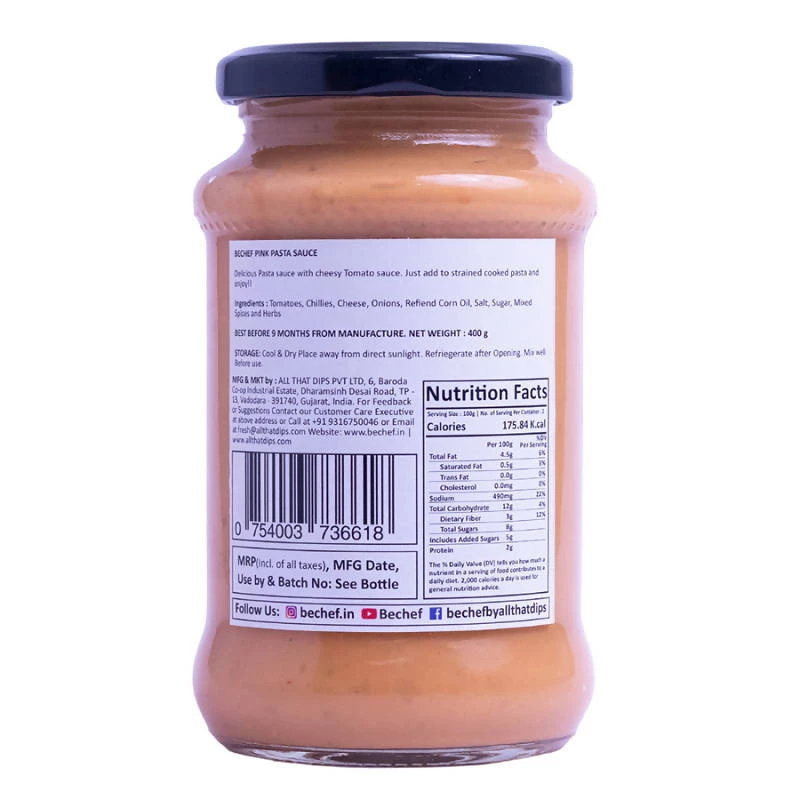 Be Cheff Bechef Pink Pasta Sauce (400 Gms) Ready To Eat