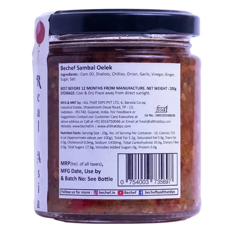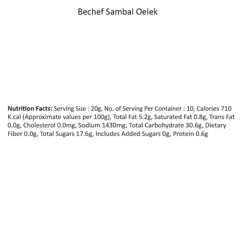 Bechef Sambal Oelek, is a recipe that uses classic chili paste used for cooking, dipping sauce or as chutney. Made with a variety of ground chili peppers, onions, garlic, vinegar and salt. It is ideal for seasoning noodle dishes and enhancing the flavours of sauces.