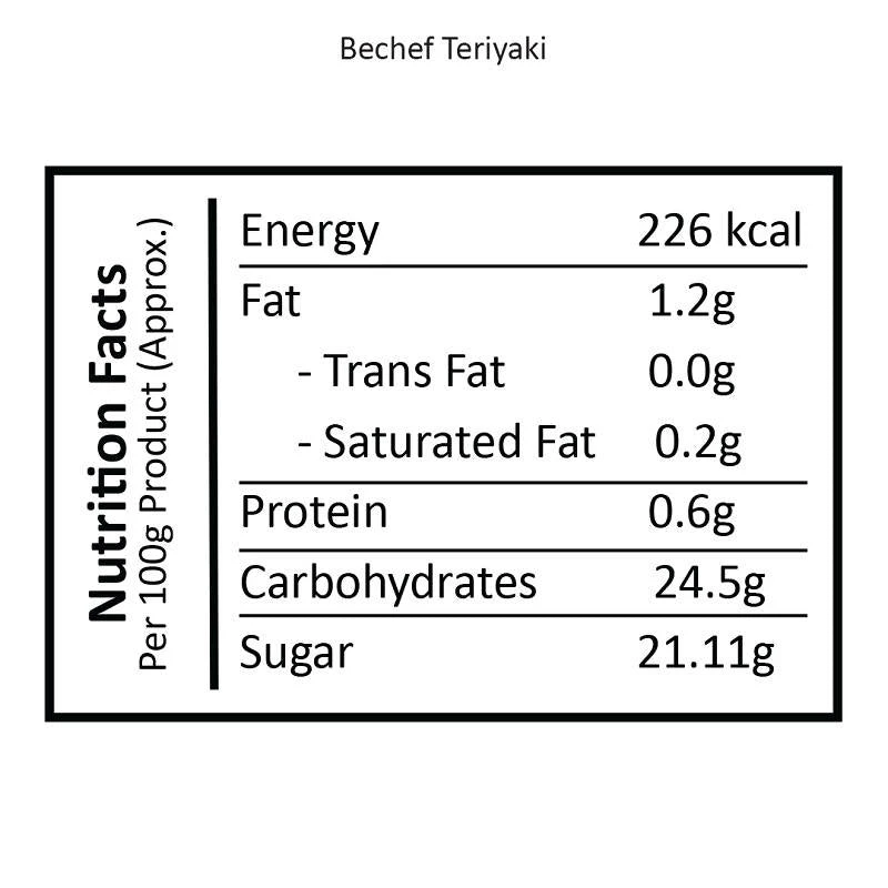 | Bechef Teriyaki Sauce is sweet and savory dipping and cooking sauce with brilliant underlying umami flavors. This Sauce is made with a generous helping of ginger mixed with demura Sugar. Bechef Teriyaki Sauce is free from alcohol and is suitable for the Vegetarian and Vegan diet. |