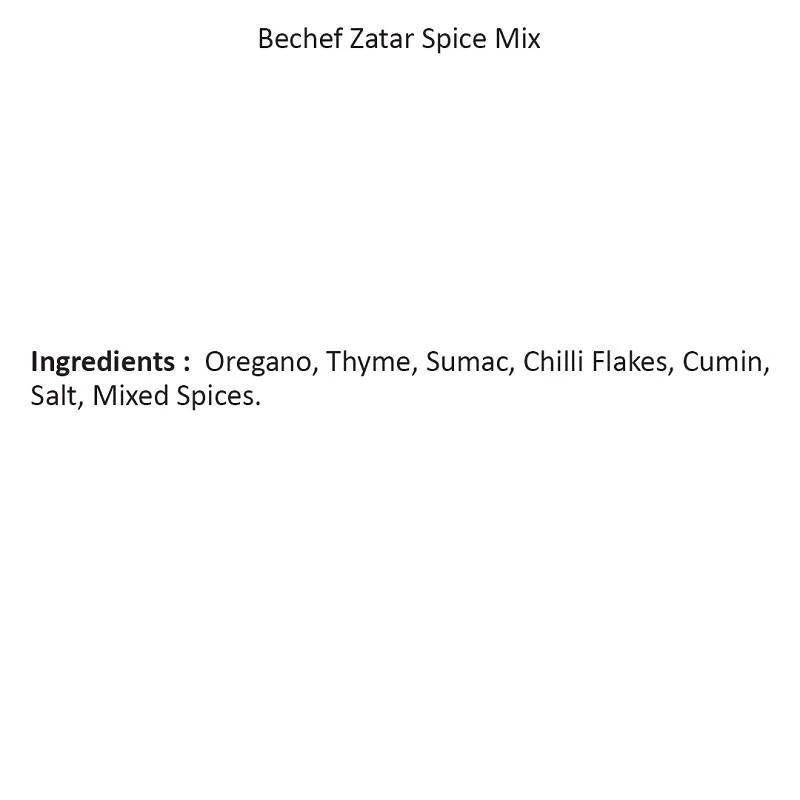 SKU: seasonings-spices-7120611180724 Categories: Grocery, Masala & Spices, Ready to Eat, Snacks & Beverages Tags: Bechef Zatar Spice Mix, Zatar Spice Mix