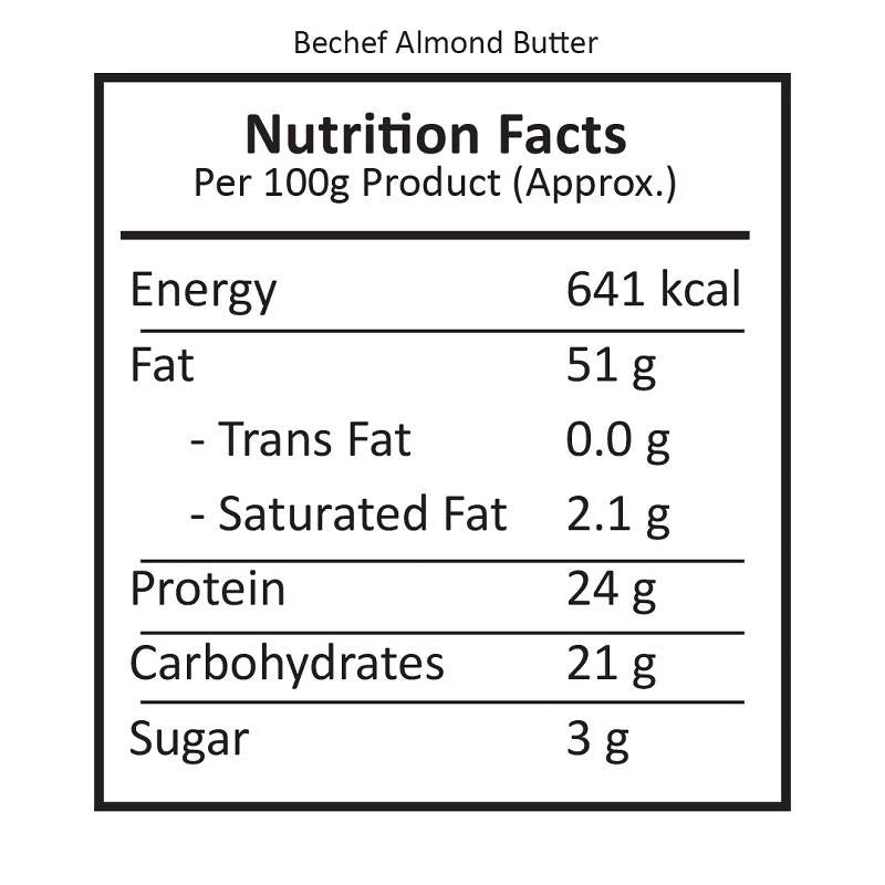 Bechef Almond Nut Butter is delicious and packed with nutritious protein, which can be used as a spread/butter and best enjoyed on a morning or an evening toast, in a smoothie, or mixed in with a bowl of oatmeal, muesli.