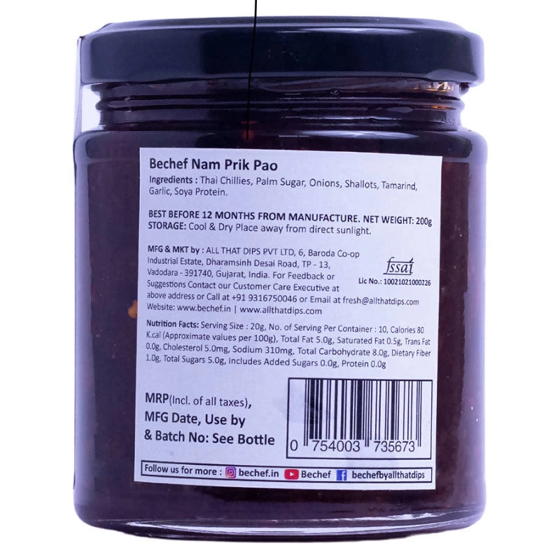 SKU: dips-spreads-7120613146804 Categories: Pickles & Chutney, Ready to Eat, Snacks & Beverages, Spreads Sauce & Ketchup Tags: Bechef Nam Prik Pao, Nam Prik Pao