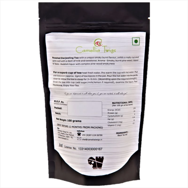 Roasted darjeeling tea with unique smoky brunt flavour, yeilds a malty cup and goes well with a dash of milk and sweetener, Aroma-smoky, brunt pine wood, liquor & taste-reddish liquor with complex pine-wood smokyness.