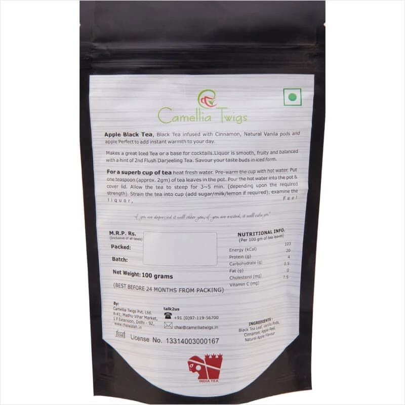 Camelia Twigs Snacks & Beverages Camellia Twigs Apple Cinnamon Black Tea (100 G Pouch)