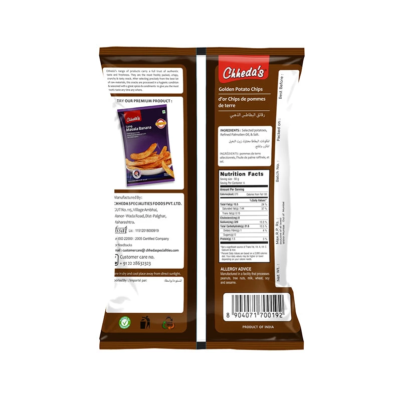 Chheda Golden Potato Chips (170g) Snacks & Beverages