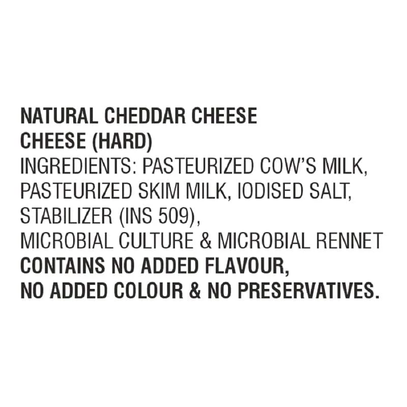 Traditional Mild Natural Cheddar Cheese, made from pure cow milk.