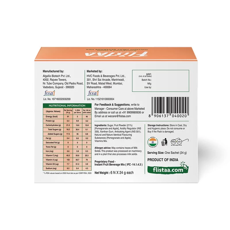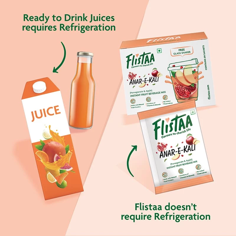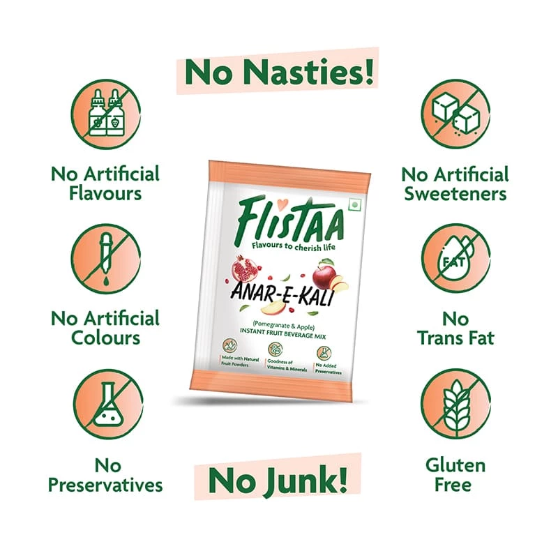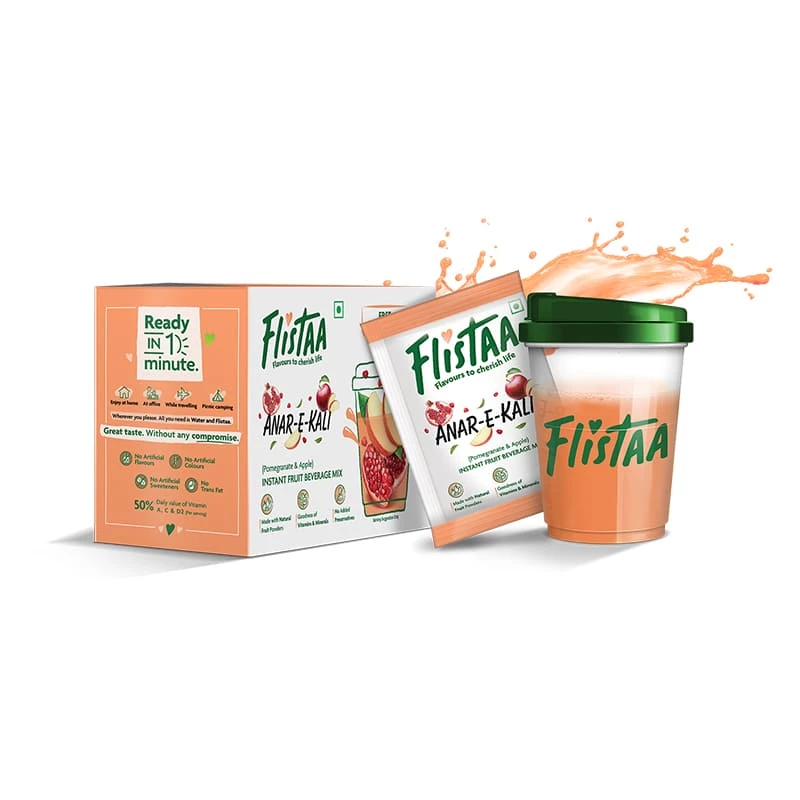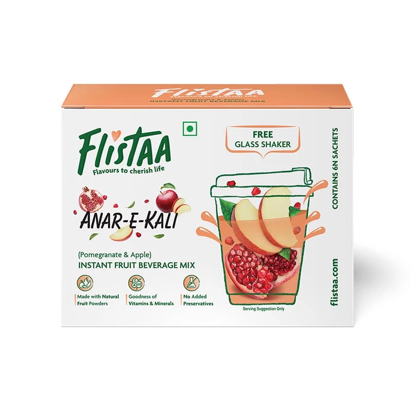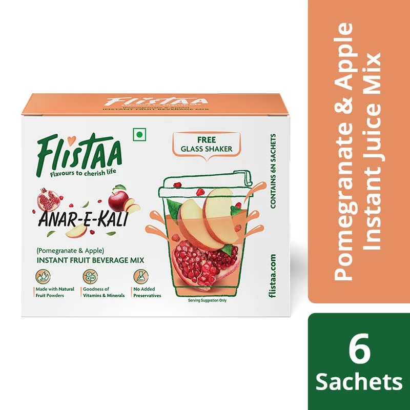 Flistaa AnarKali (Pomegranate & Apple) Instant Juice Mix (6 Sachets & FREE Shaker- Buy 2 Get 1 Free) Snacks & Beverages