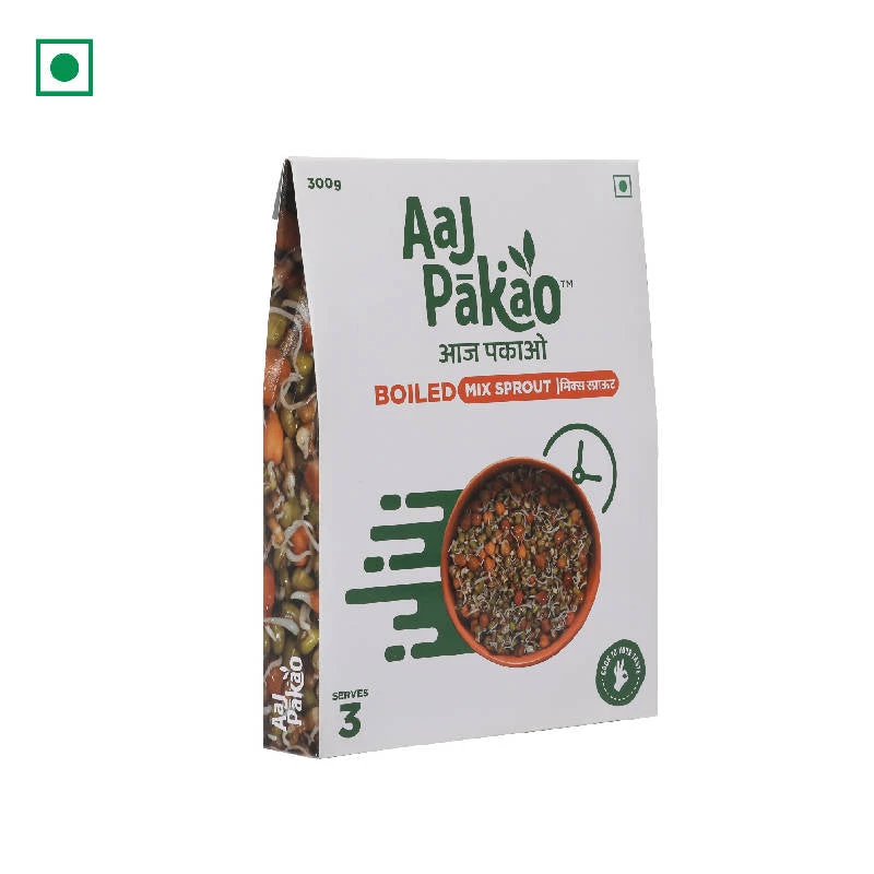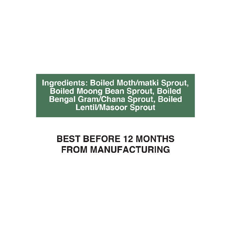 300g boiled mix sprouts (matki, moong, chana & masoor) in aseptic packaging. One packet serves 2-3.