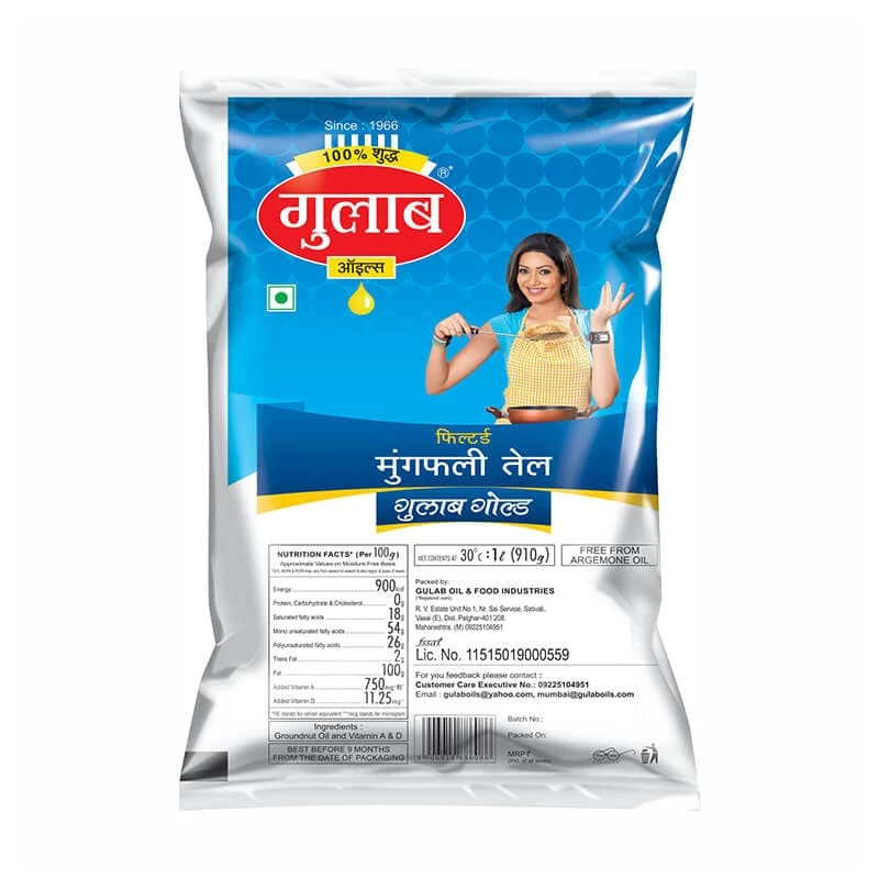 Gulab Oil Grocery Gulab Groundnut Filter Oil Pouch (1 Ltr)