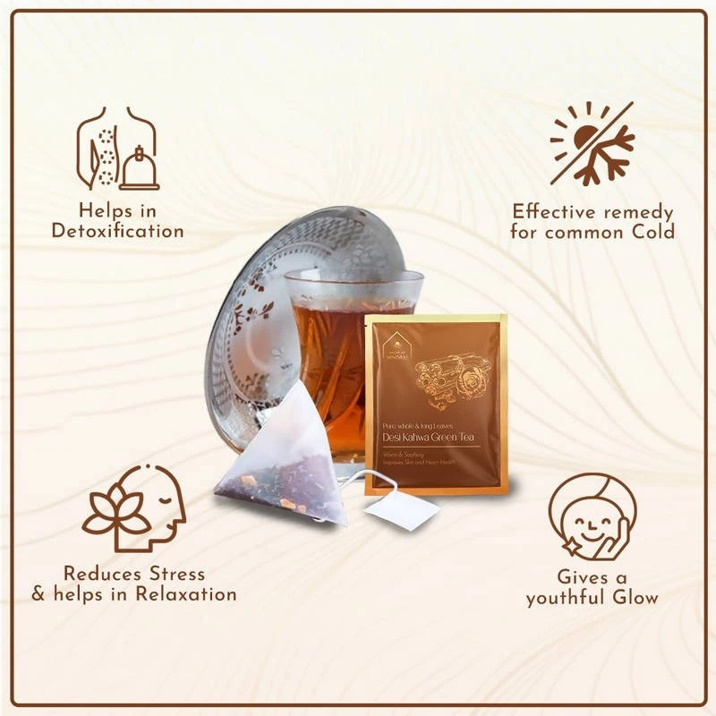 Hindraj Tea Hindraj Herbal Desi Kahwa Green Tea Bags – (1 Box Of 15 Sachets) Grocery