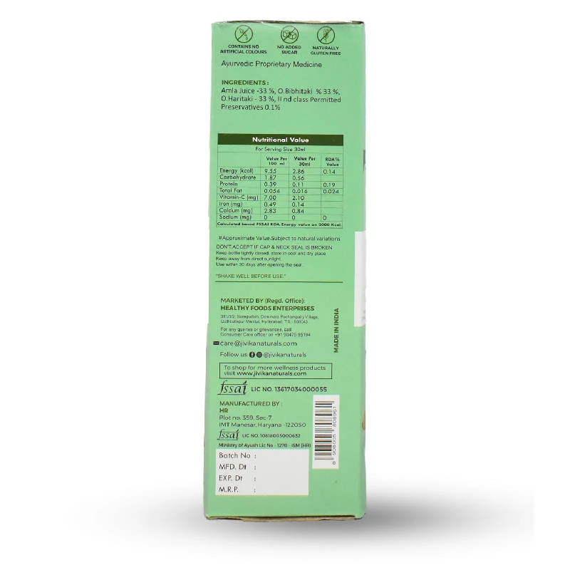 Combining the healing powers of Amla, Bahera, and Haritaki, Jivika Naturals Triphala Juice is a one cup solution to health and wellness. The juice is produced in small batches, ensuring all the goodness from each herb is preserved within every drop.Â