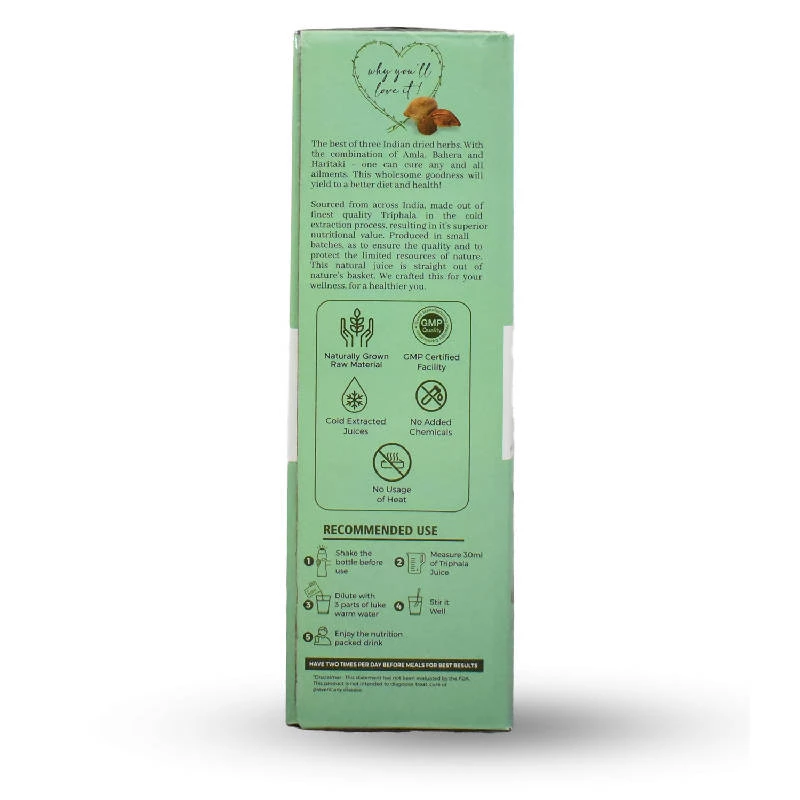 Each of the ingredients in our Triphala Juice comes with digestive health promoting elements.Â