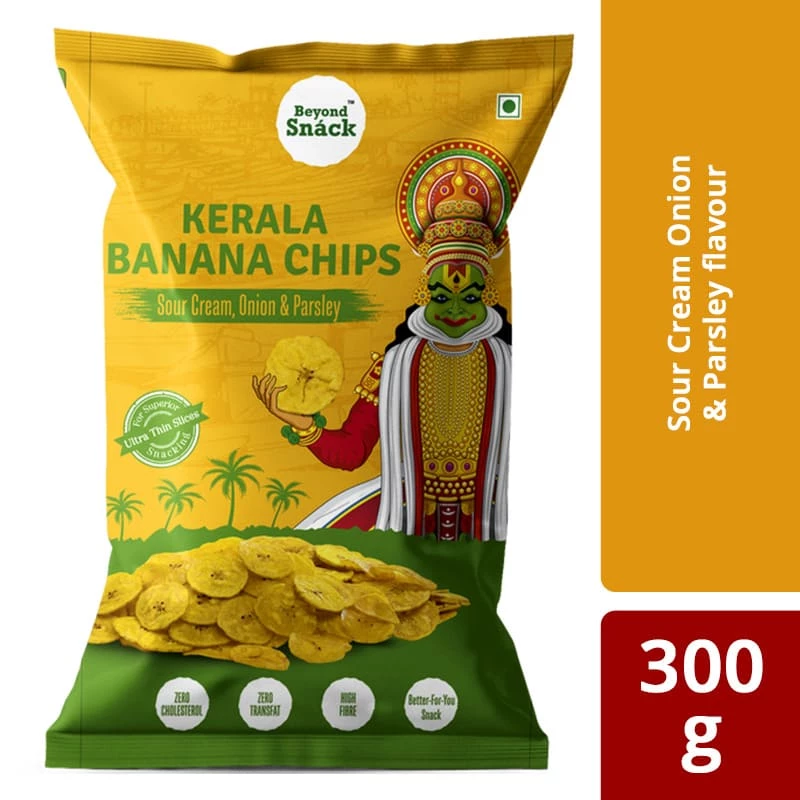 Beyond Snack Kerala Banana Chips are authentic Kerala Banana Chips made from exclusive variety of Banana called Nendran that grows in Kerala.We procure this Nendran Banana directly from our partnered farmers to have a better control on the quality of the banana.The banana chip is processed in a fully automated facility with No Hand Touch. Bananas are washed, sliced, cooked, seasoned and finally packed.We use high grade vegetable oil, the amount of time the Banana Chips are exposed to oil is very short compared to traditional cooking, you will not even feel a tinge of oil on its surface but cooked to perfection for Delicious and Healthy Chips. Hence our chips are 20% Less Fat and has Zero Cholesterol. Beyond Snack Banana Chips are 100% Natural, Vegan, Trans fat-free, Gluten-Free, Non-GMO, No Added Artificial Colours or Flavours so you could have the best Snacking experience. FULL OF FLAVOURS, JUST LIKE OUR LIFE – Beyond Snack banana chips comes in 3 really exciting flavors. Each bite will be a taste festival for our palate. 1)Original Style – Authentic Kerala Chips in its original style. Ultra-thin wafers make it light and classy in the way we always loved it. 2) Peri-Peri -A spicy getaway with African Piri-Piri chili and exotic ginger. It is hot but totally worth it.3) Sour Cream, Onion & Parsley – An enticing Sour cream blended with onion and garnished with fine parsley. It’s smooth and creamy with its delightful aroma.4) Salt & Black Pepper – Peppercorns exclusively grown in high altitudes Sun-dried, grounded and blended with fine salt. Truly Bold and brash that you fall in love with this irresistible temptation