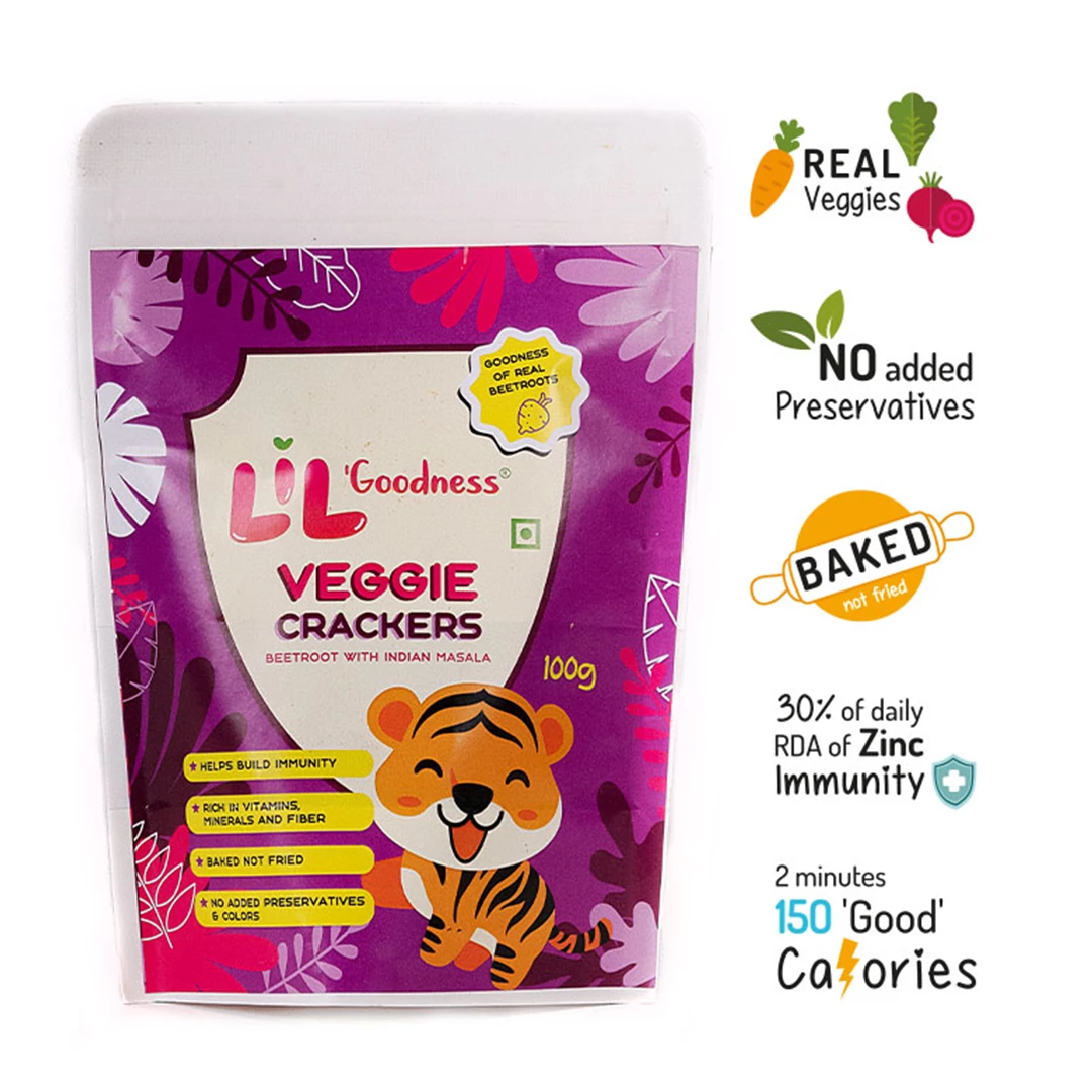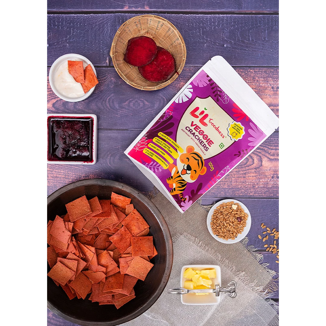 Delicious beetroot crackers, packed with love for your young ones. Every ingredient is fresh, keeping in mind their health, immunity and taste buds. An oil-free multigrain cracker for guilt-free snacking.