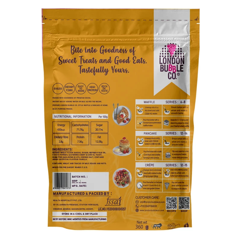 London Bubble Waffle & Pan Cake Premix – Chocolate Flavour (360 G) Dairy & Bakery