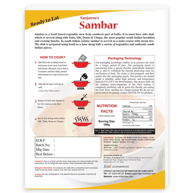 M3 Kitchen M3 Sambar (300 G) – Buy 1 Get 1 Free Snacks & Beverages