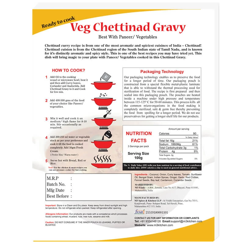 M3 Kitchen M3 Veg Chettinad Gravy (300 G) – Buy 1 Get 1 Free Snacks & Beverages