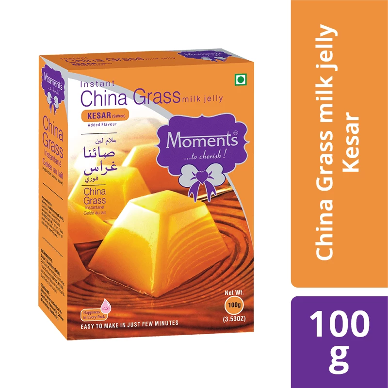 MOMENTS INDUSTRIES Moments Instant China Grass Milk Jelly – Kesar 100 Gm