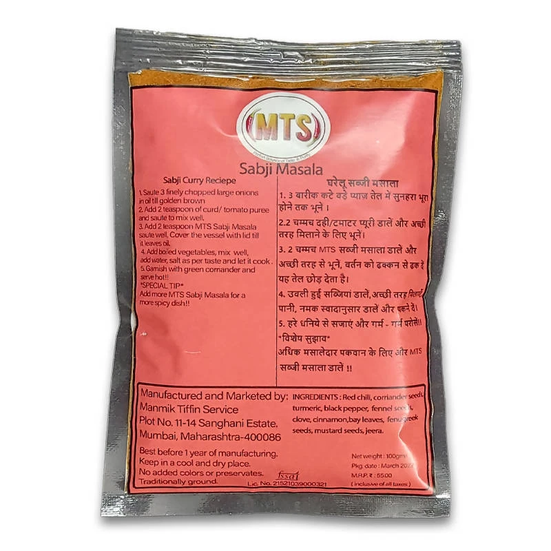 MTS Masale Grocery MTS HOMEMADE SABJI MASALA (100 G)