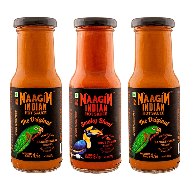 Naagin Sauce NAAGIN Indian Hot Sauce Combo (Original X 2, Bhoot X 1) (Pack Of 3) (230 G X 3 = 690 G)