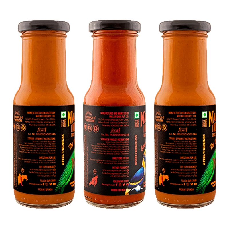 Naagin Original hot sauce is a medium-spicy blend highlighting the best flavours from Western India. A full-bodied uplifter of the bland, it has a base of tomatoes, onions and garlic, perfectly combined with Sankeshwari and Bhavnagri chillies to bring you a little kick. “The rich-textured Naagin Bhoot hot sauce?s unique flavour comes from North-East India?s legendary Bhut Jolokia chilli. The flavour is built on a base of celery, onions and garlic, before the heat slowly creeps up on you to delight and torment your taste buds in equal measure.