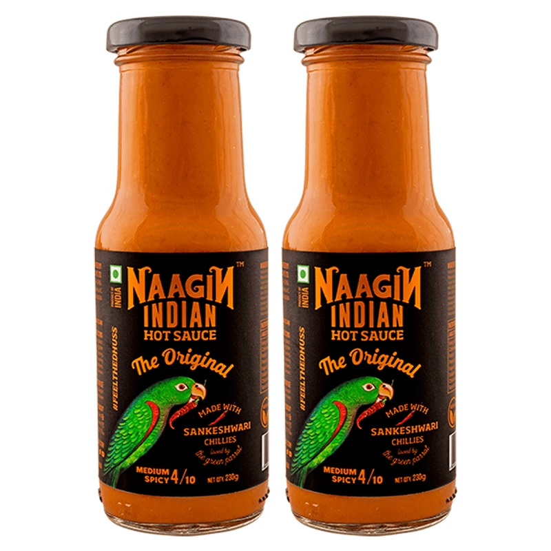 Naagin Original hot sauce is a medium-spicy blend highlighting the best flavours from Western India. A full-bodied uplifter of the bland, it has a base of tomatoes, onions and garlic, perfectly combined with Sankeshwari and Bhavnagri chillies to bring you a little kick.