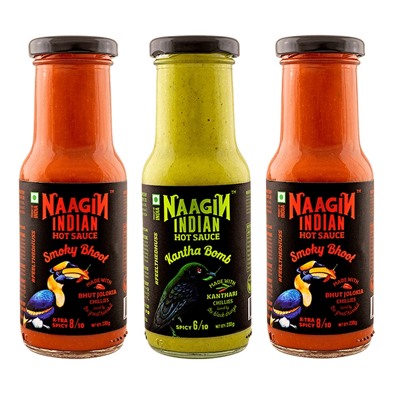 Naagin Sauce Snacks & Beverages Naagin Indian Hot Sauce Combo (Bhoot X 2, Kantha X 1) (Pack Of 3) (230 G X 3 = 690 G)