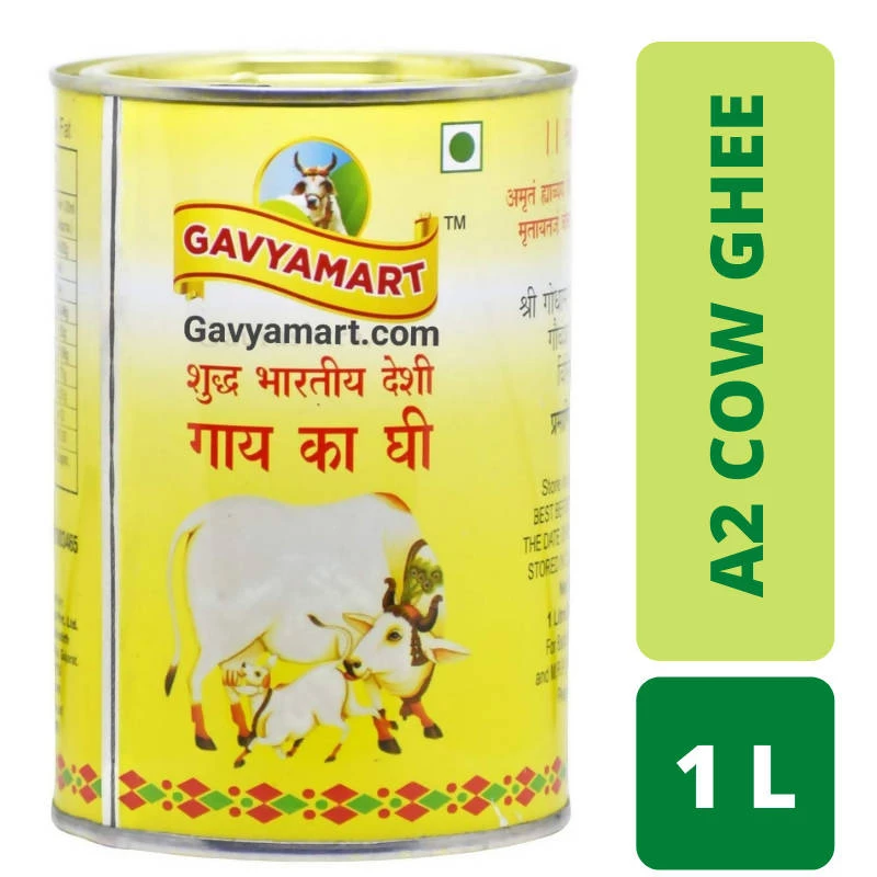 Desi Cow Ghee is known as the golden medicine of Ayurveda, Gavyamart ghee is prepared ghee with Indian cows. Indian cow is the only divine living being that has a Surya Ketu- Nadi ( Vein Connected to the sun ) passing through her backbone. Surya Ketu Vein’s interaction with solar rays produces golden salts in cow’s blood. Gavyamart Kankrej Cow A2 Cultured Ghee is Lactose-free, gluten-free, easy to digest, and safe for most people with lactose or casein sensitivities. Gavyamart Desi Cow Ghee has a smooth, Granny texture and rich, nutty flavor, and is a versatile pantry staple that can replace cooking oil or butter, Because, of its high smoke point (250C or 482F), ghee is one of the best oils to use in cooking since it can break down into free radicals like others. Gavyamart Kankrej Cow A2 Cultured Ghee lowers bad cholesterol levels and increases good cholesterol levels, thus maintaining a healthy balance.Organically made, this Ghee is taken into account satvik in its true sense of the word, and consumed in numerous ways that, as well as in Daals, curries, or on Parathas or Naans etc. Pure Desi Cow Ghee enhances the style of food.