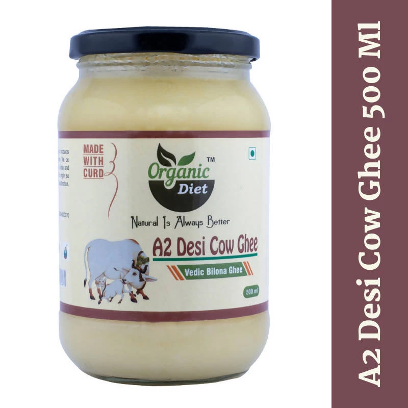 Organic Diet A2 Desi Cow Bilona Ghee made solely from the milk of desi cows is termed as A2 cow ghee. The basic ingredient of this ghee, A2 cow milk, The A2 cow ghee has amino acids which make it easier to digest. It is more nutritious and is well tolerated by lactose-intolerant people and those suffering from IBS.