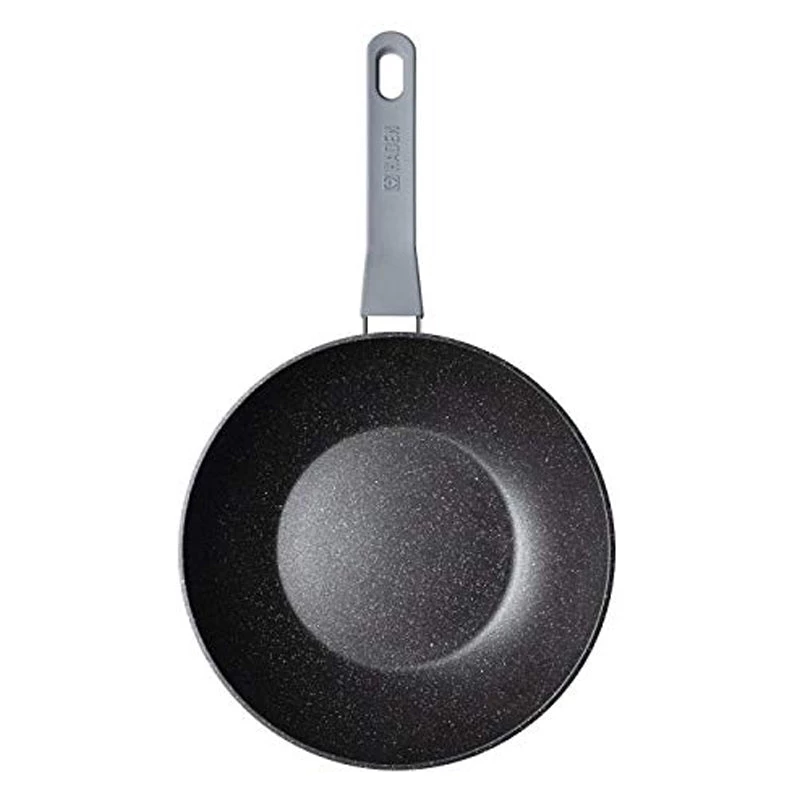 Stir up a wide range of delicious dishes with help from this aluminium nonstick induction wok pan from Haden. Smaller at the bottom and wider at the top, the versatile wok pan works well for anything from stir frying, deep frying, searing, or steaming to poaching, boiling, or braising.When used for stir-frying, the pan?s roomy size allows for quickly stirring ingredients (like chopped veggies, tofu, seafood, or meat) at a high temperature and with a small amount of oil, while keeping it neatly contained. The open wok pan measures 28cm x 9 x 6 cm.The aluminium pan heats quickly and efficiently, while its titanium-plasma and dakin nonstick coating helps ensure effortless food release. The nonstick pan not only offers a more forgiving cooking surface, but it also allows for cooking with less fat or oil.Cook various South Indian delicacies as well as rotis regularly to keep your family happy and healthy.This cookware set from Haden has an aluminium construction with non-stick coating.