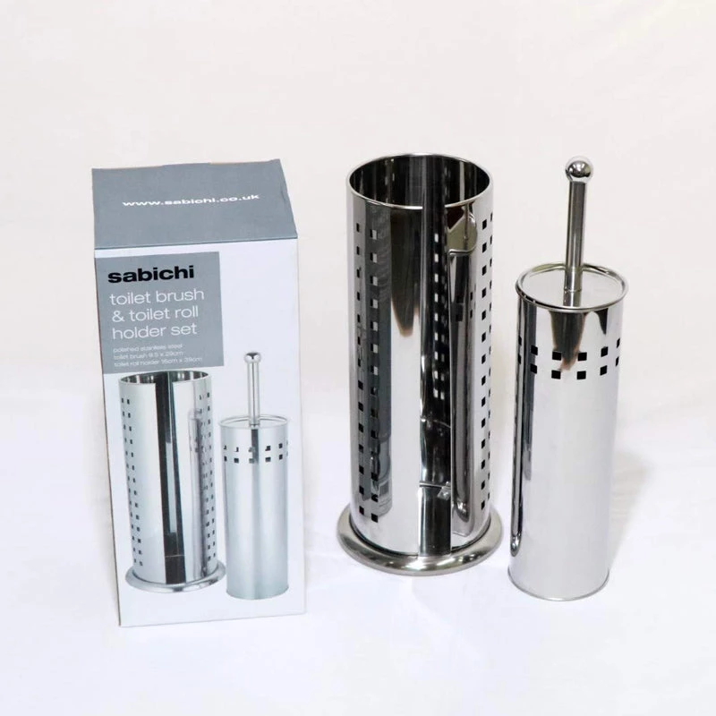 Stainless Steel Squares Toilet Brush & Toilet Roll Holder. Keep your bathroom looking clean & tidy with Sabichi. With a retro squares design and a mirror finish ,this toilet brush & roll holder set will give your bathroom a modern look & feel. Model: Squares Toilet Brush & Roll Holder