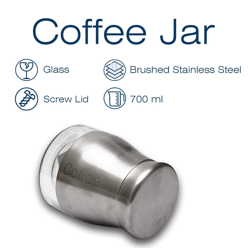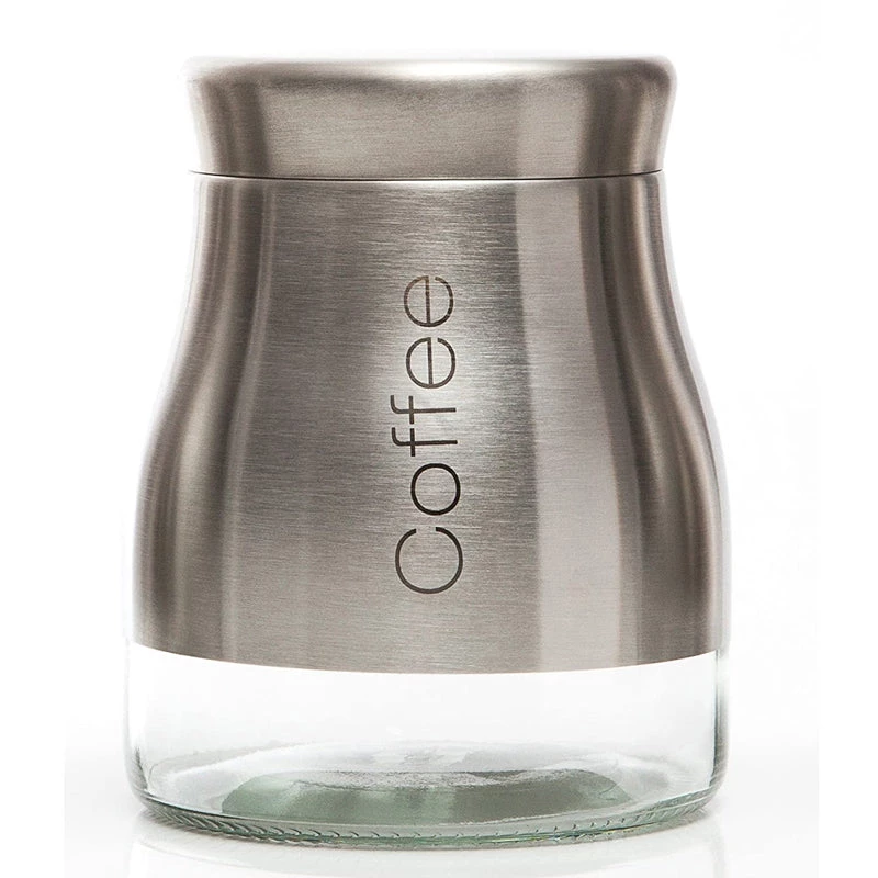 The canister has a durable glass body with a stainless-steel coating and the clear body at the bottom means you can easily see when you?re running low on your favorite coffee!