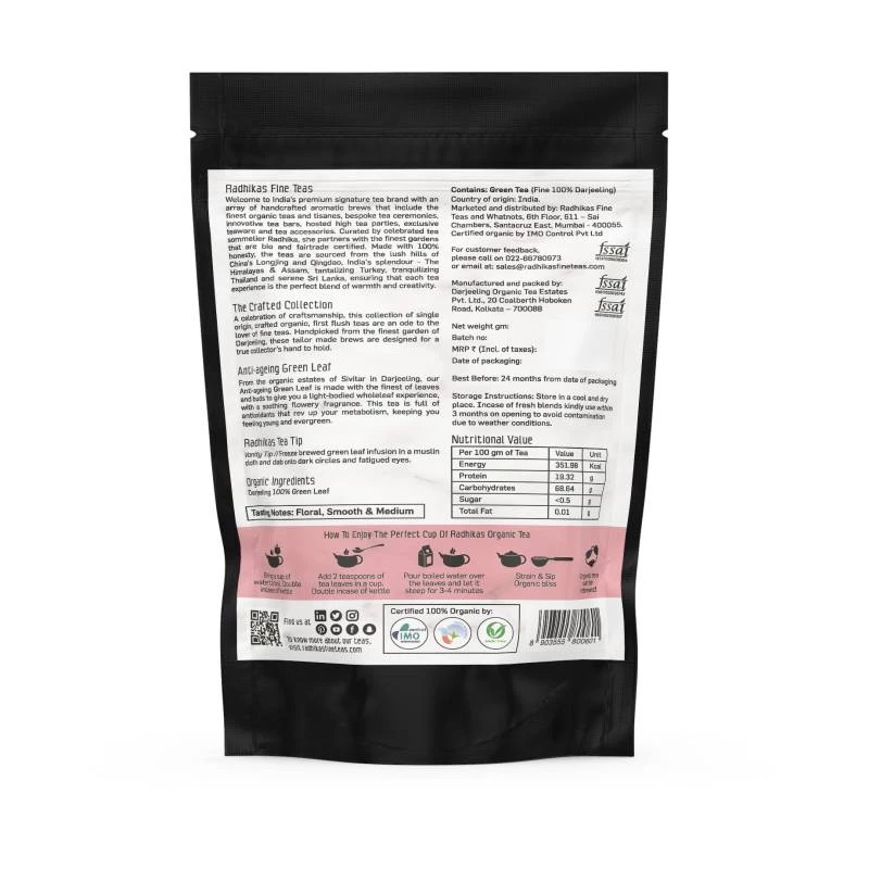 Radhikas Fine Teas Green leaf tea is our bestseller. Plucked, packed and into your teacup, organic tea all the way from our tea plantation Sivitar, Darjeeling, thus no middlemen.