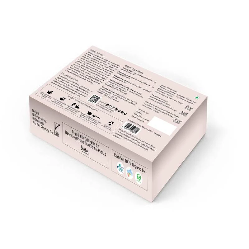 A celebration of craftsmanship, this collection of single origin, crafted organic, first flush blends is an ode to the lover of fines teas. Handpicked from the finest garden of Darjeeling, Sivitar, these tailor made brews are designed for a true collector’s hand to hold. At Radhikas Fine Teas, each tea has a purpose all resonated in the following 5 flavours Darjeeling : (1) CALMING White Leaf. (2) ANTI-AGEING Green Leaf. (3) ENERGETIC Oolong Leaf. (4) SOOTHING Almond Kashmiri Kahwa. (5) DIGESTIVE Mukhwas Tea. 5 flavours with value deals. A perfect gift set of organic tea for your friends and family, full of antioxidants and immunity builders.