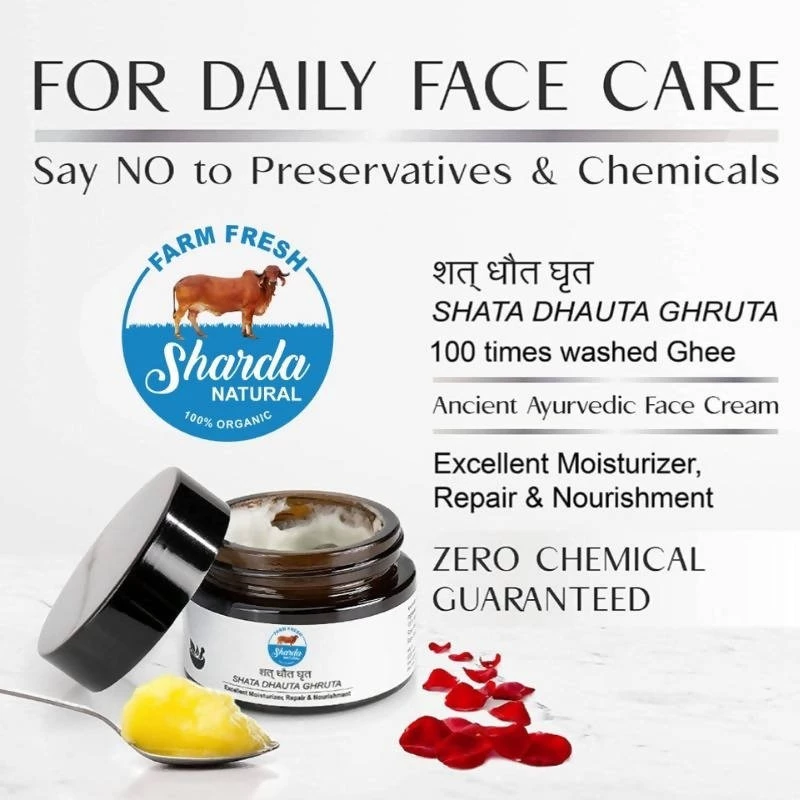 Sharda Farms Shata Dhauta Ghruta Moisturizer With Saffron A2 Gir Cow Bilona Ghee Natural Desi Ghee Skin Moisturizing cream for all type of skin (100 Times Washed Ghee) – 50 Gms