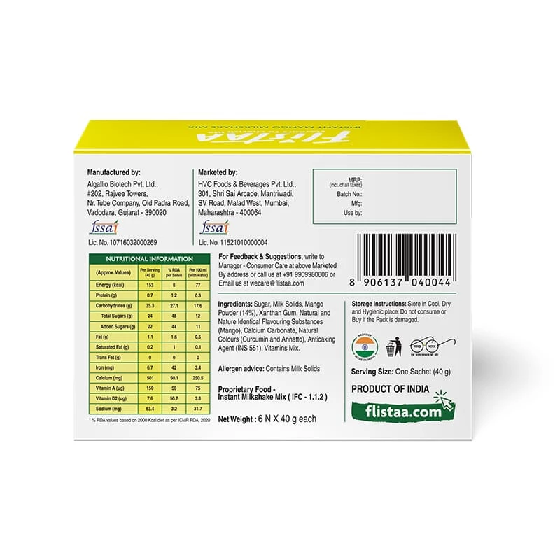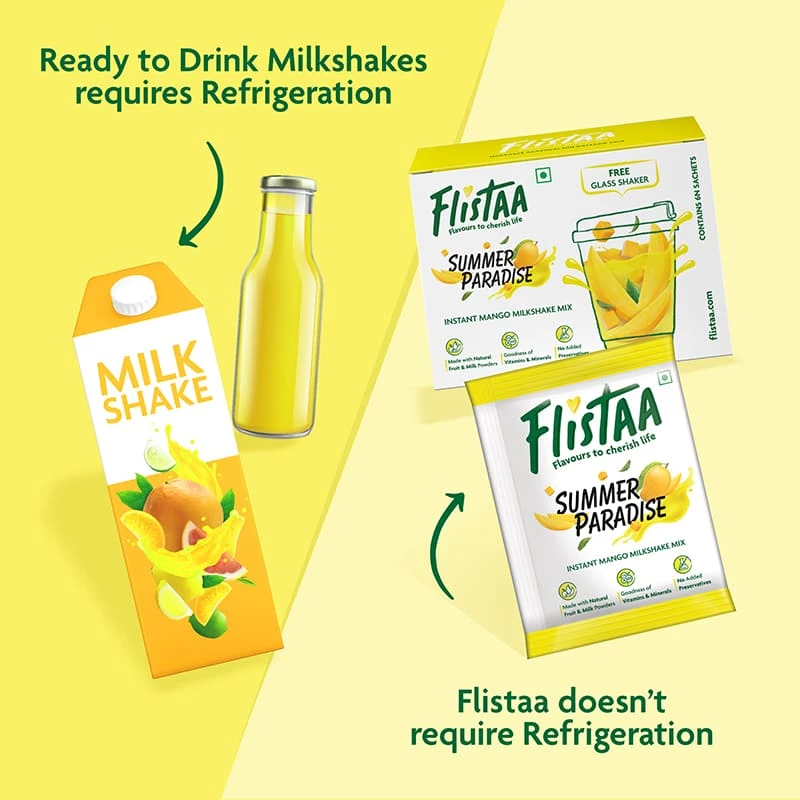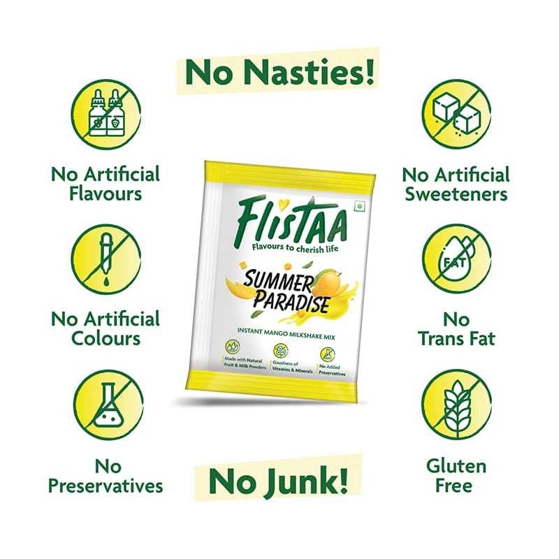 Snacks & Beverages Flistaa Summer Paradise Mango Instant Milkshake Mix (6 Sachets & FREE Shaker -Buy 2 Get 1 Free)