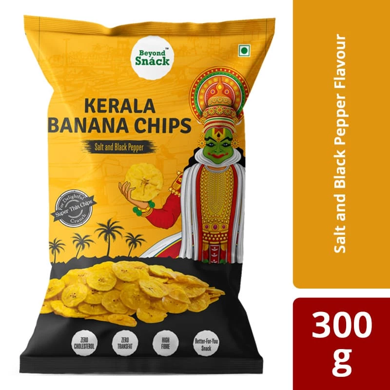 Beyond Snack Kerala Banana Chips are authentic Kerala Banana Chips made from exclusive variety of Banana called Nendran that grows in Kerala.We procure this Nendran Banana directly from our partnered farmers to have a better control on the quality of the banana.The banana chip is processed in a fully automated facility with No Hand Touch. Bananas are washed, sliced, cooked, seasoned and finally packed.We use high grade vegetable oil, the amount of time the Banana Chips are exposed to oil is very short compared to traditional cooking, you will not even feel a tinge of oil on its surface but cooked to perfection for Delicious and Healthy Chips. Hence our chips are 20% Less Fat and has Zero Cholesterol. Beyond Snack Banana Chips are 100% Natural, Vegan, Trans fat-free, Gluten-Free, Non-GMO, No Added Artificial Colours or Flavours so you could have the best Snacking experience. FULL OF FLAVOURS, JUST LIKE OUR LIFE – Beyond Snack banana chips comes in 3 really exciting flavors. Each bite will be a taste festival for our palate. 1)Original Style – Authentic Kerala Chips in its original style. Ultra-thin wafers make it light and classy in the way we always loved it. 2) Peri-Peri -A spicy getaway with African Piri-Piri chili and exotic ginger. It is hot but totally worth it.3) Sour Cream, Onion & Parsley – An enticing Sour cream blended with onion and garnished with fine parsley. It’s smooth and creamy with its delightful aroma.4) Salt & Black Pepper – Peppercorns exclusively grown in high altitudes Sun-dried, grounded and blended with fine salt. Truly Bold and brash that you fall in love with this irresistible temptation