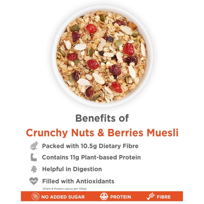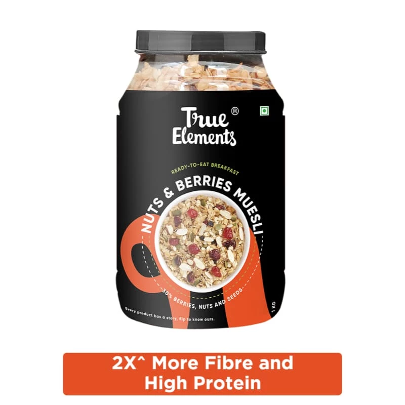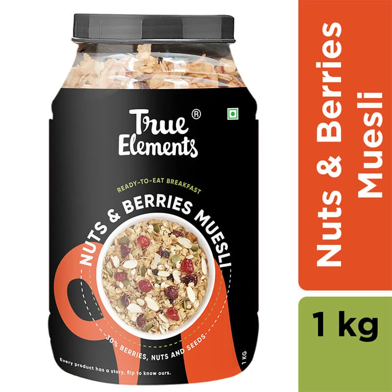 Snacks & Beverages True Elements Crunchy Nuts & Berries Muesli, With Almonds And Cranberries (1 Kg)