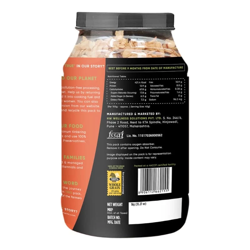 True Elements Crunchy Nuts & Berries Muesli, with Almonds and Cranberries (1 kg)