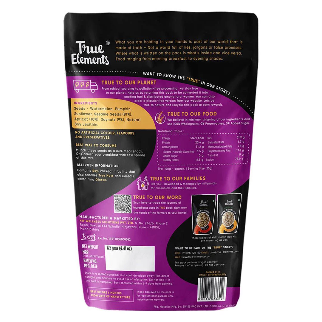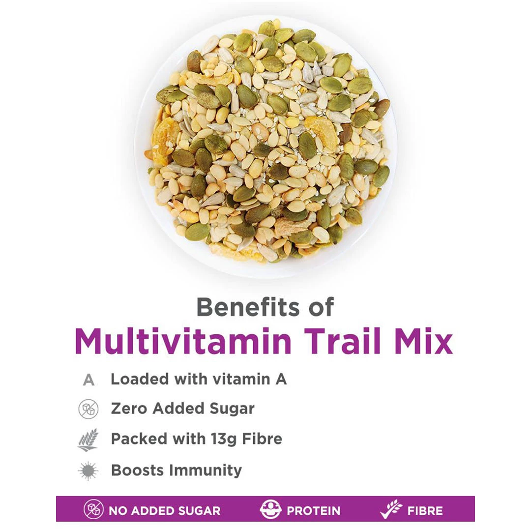 True Elements Multivitamin Trail Mix is a heavenly combination of crunchy Sunflower, pumpkin Watermelon, sesame seeds with soynuts and apricots.