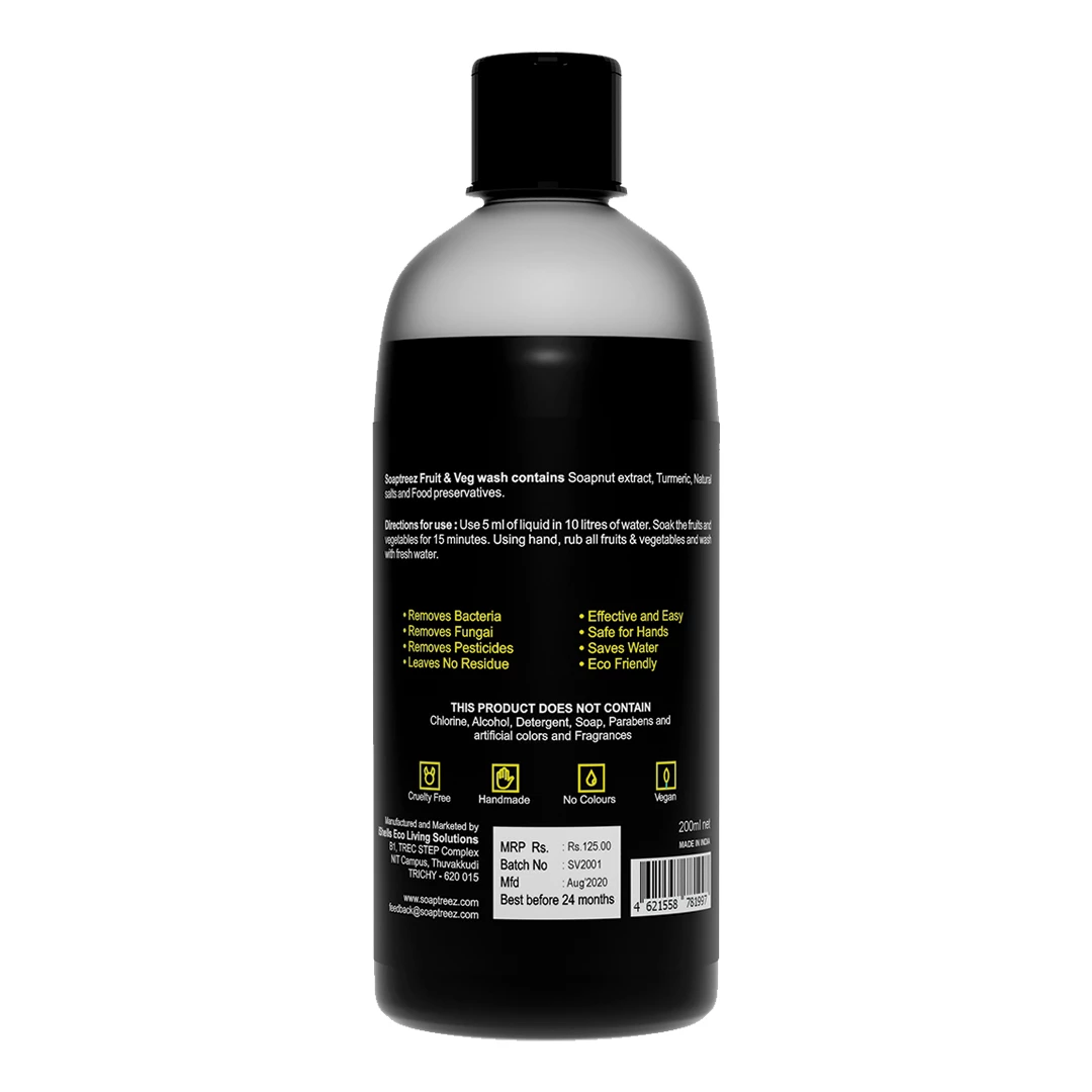 Eating fruits and vegetables nourish our body and mind. So they should be free from toxic chemicals. Soaptreez Fruit and veg wash ensures safe consumption of fruits and vegetables by removing dirt, fungi, microbes and pesticides.