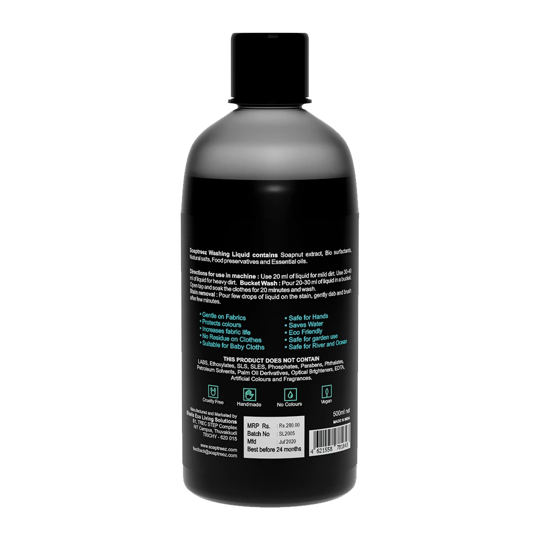 It can be used for washing by hand and by washing machines. Soaptreez laundry liquid is designed in such a way that it can be used in both front loading and top-loading washing machines. Since it contains fabric softener, no additional fabric softener is required. Soaptreez laundry liquid contains natural antimicrobial agent which removes the germs from your clothes. Being a liquid, it does not clog the washing machine tubes and drain outlets. So it minimizes cleaning the washing machine often. Since it contains natural ingredients, it is biodegradable. So it is safe for our waterways and so it is eco friendly too.