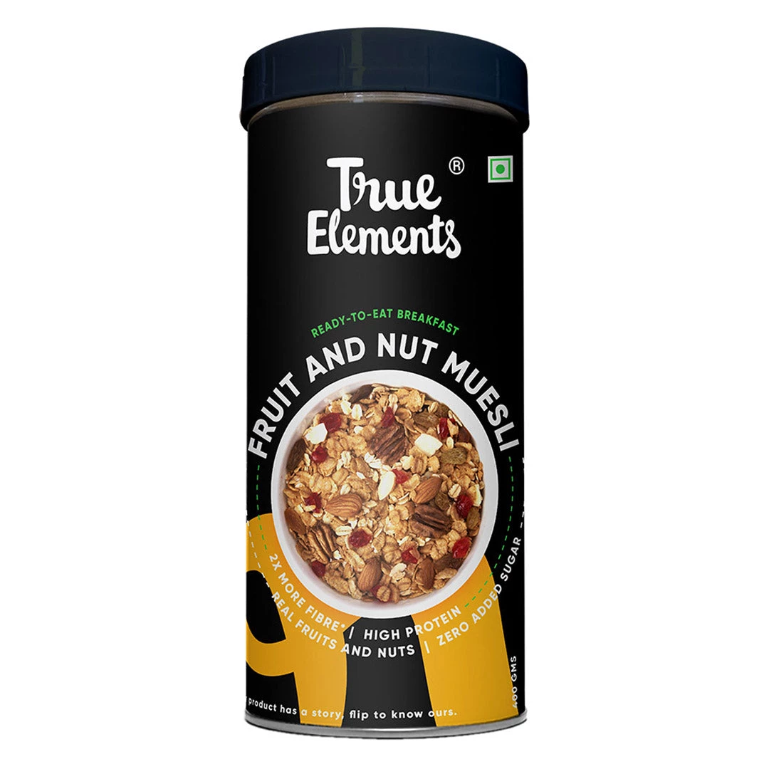 True Elements Fruit and Nut Muesli is a light and crispy variety of Muesli loaded with dried fruits and nuts.
