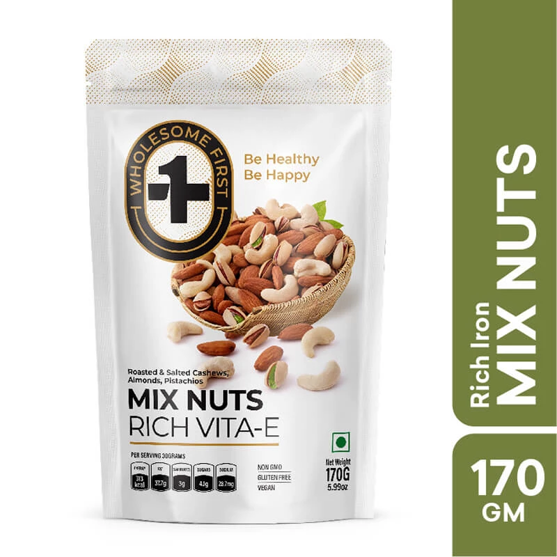 Roasted & Salted Cashews, Almond and Pistachios – full of protein